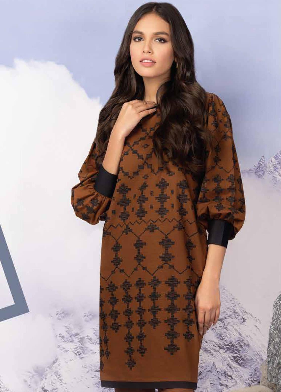 Al Karam Printed Khaddar Suits Unstitched 2 Piece AK21W FW-35.1-21 Brown - Winter Collection