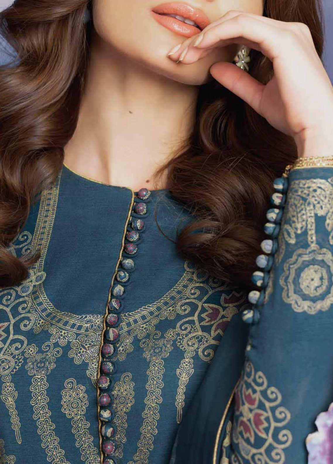 Al Karam Printed Khaddar Suits Unstitched 2 Piece AK21W FW-40-21 Teal - Winter Collection