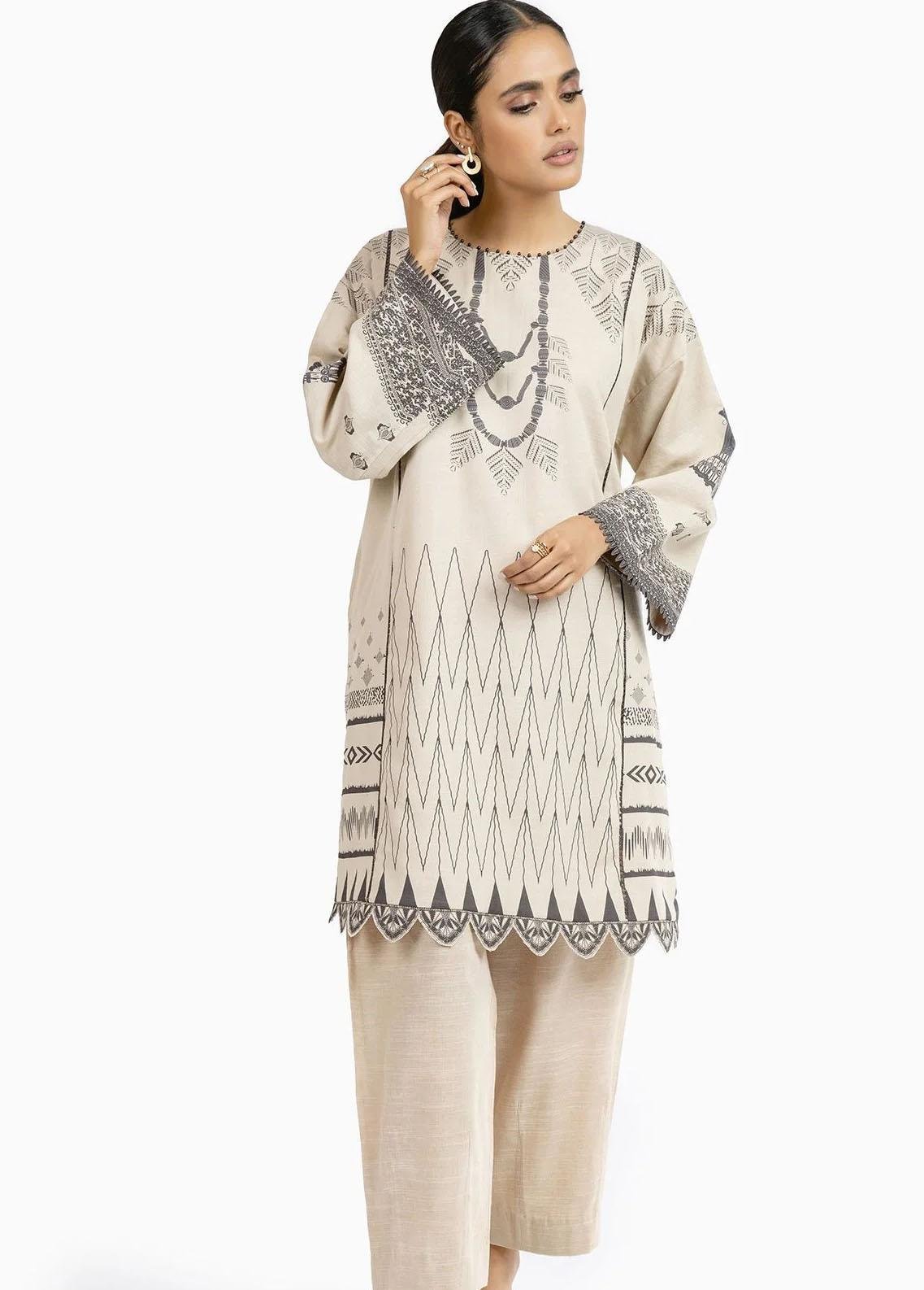Al Karam Printed Khaddar Suits Unstitched 2 Piece AK22W FW-37-22-Off White - Winter Collection