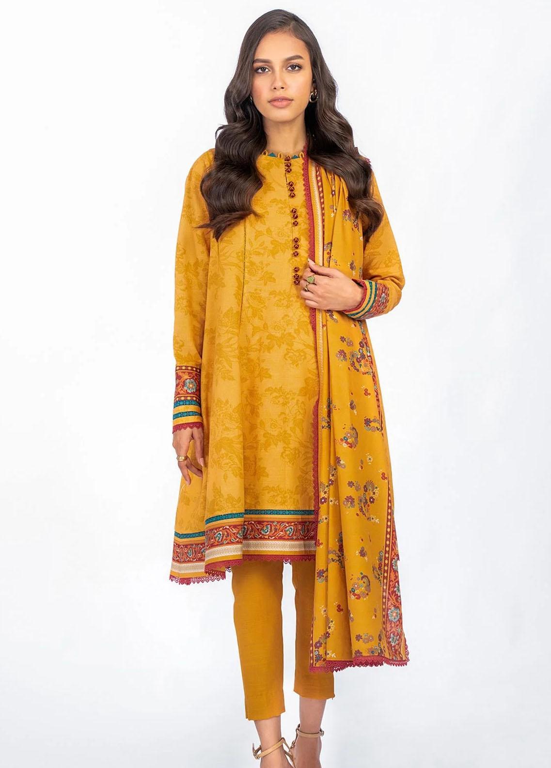 Al Karam Printed Khaddar Suits Unstitched 3 Piece AK22W FW-14.1-22-Mustard - Winter Collection