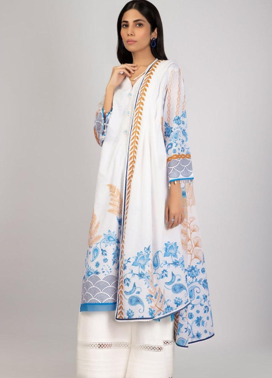 Al Karam Printed Lawn Suits Unstitched 2 Piece AK22S SS-55.1-22 White - Summer Collection