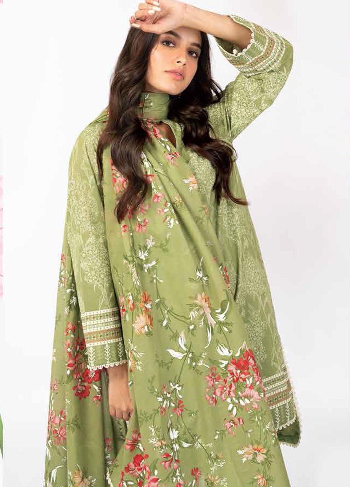Al Karam Printed Lawn Suits Unstitched 2 Piece AK23SSL SS-48-23-Olive Green - Summer Collection
