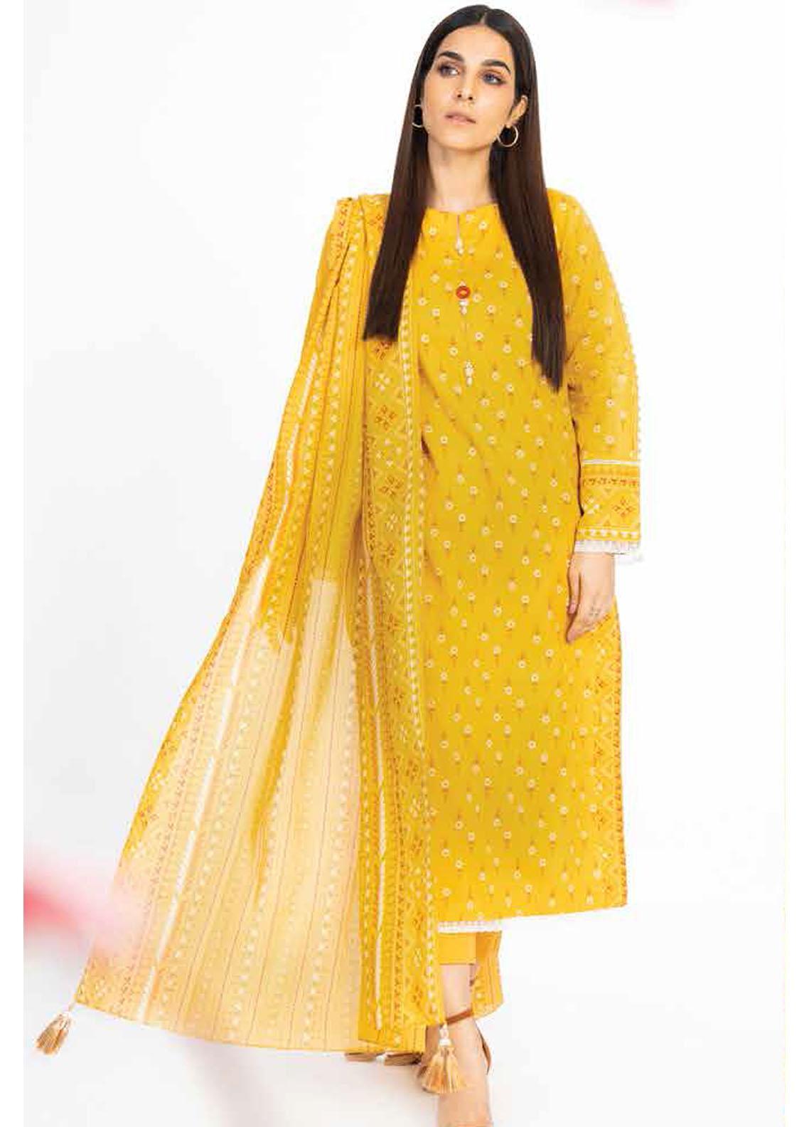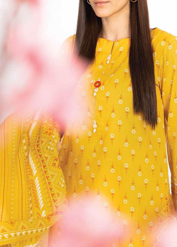 Al Karam Printed Lawn Suits Unstitched 2 Piece AK23SSL SS-65.1-23-Mustard - Summer Collection