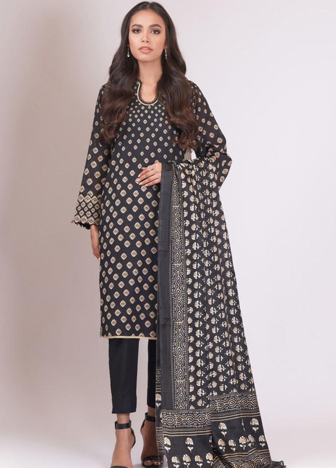 Al Karam Printed Lawn Suits Unstitched 3 Piece AK22S SS-24.1-22 Black - Summer Collection