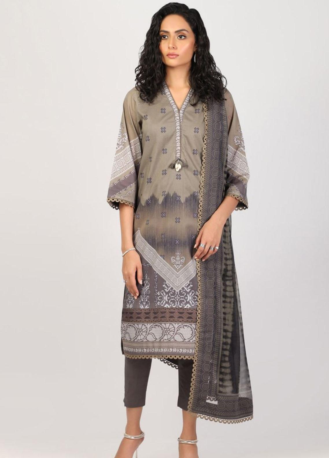 3 Piece Printed Lawn Suit With Chiffon Dupatta