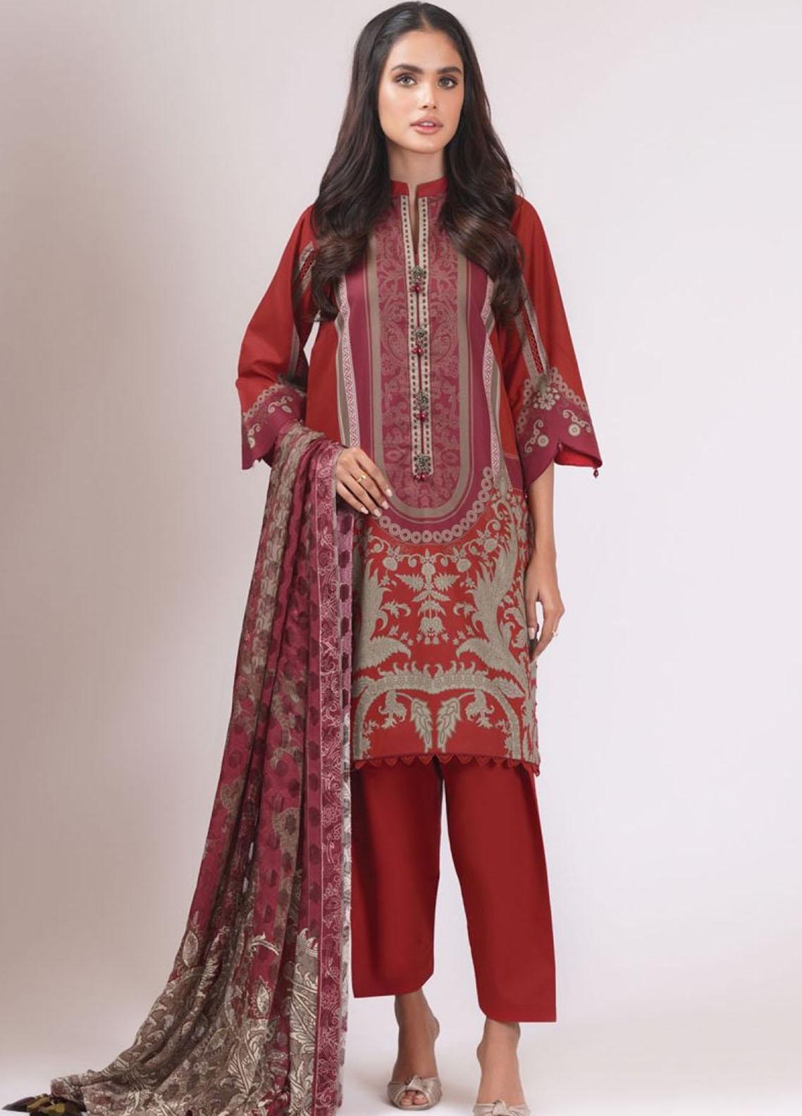 Al Karam Printed Lawn Suits Unstitched 3 Piece AK22S SS-30.1-22 Maroon - Summer Collection