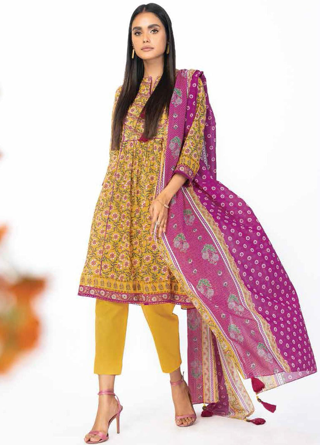 Al Karam Printed Lawn Suits Unstitched 3 Piece AK23SSL SS-11.1-23-Mustard - Summer Collection