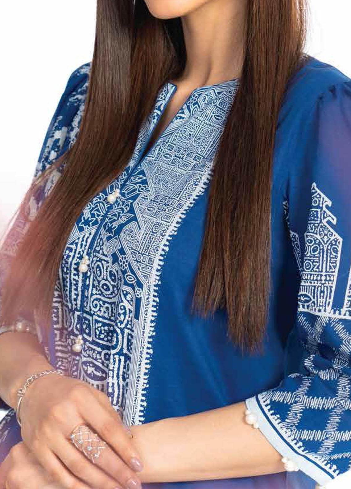 Al Karam Printed Lawn Suits Unstitched 3 Piece AK23SSL SS-31-23-Dark Blue - Summer Collection