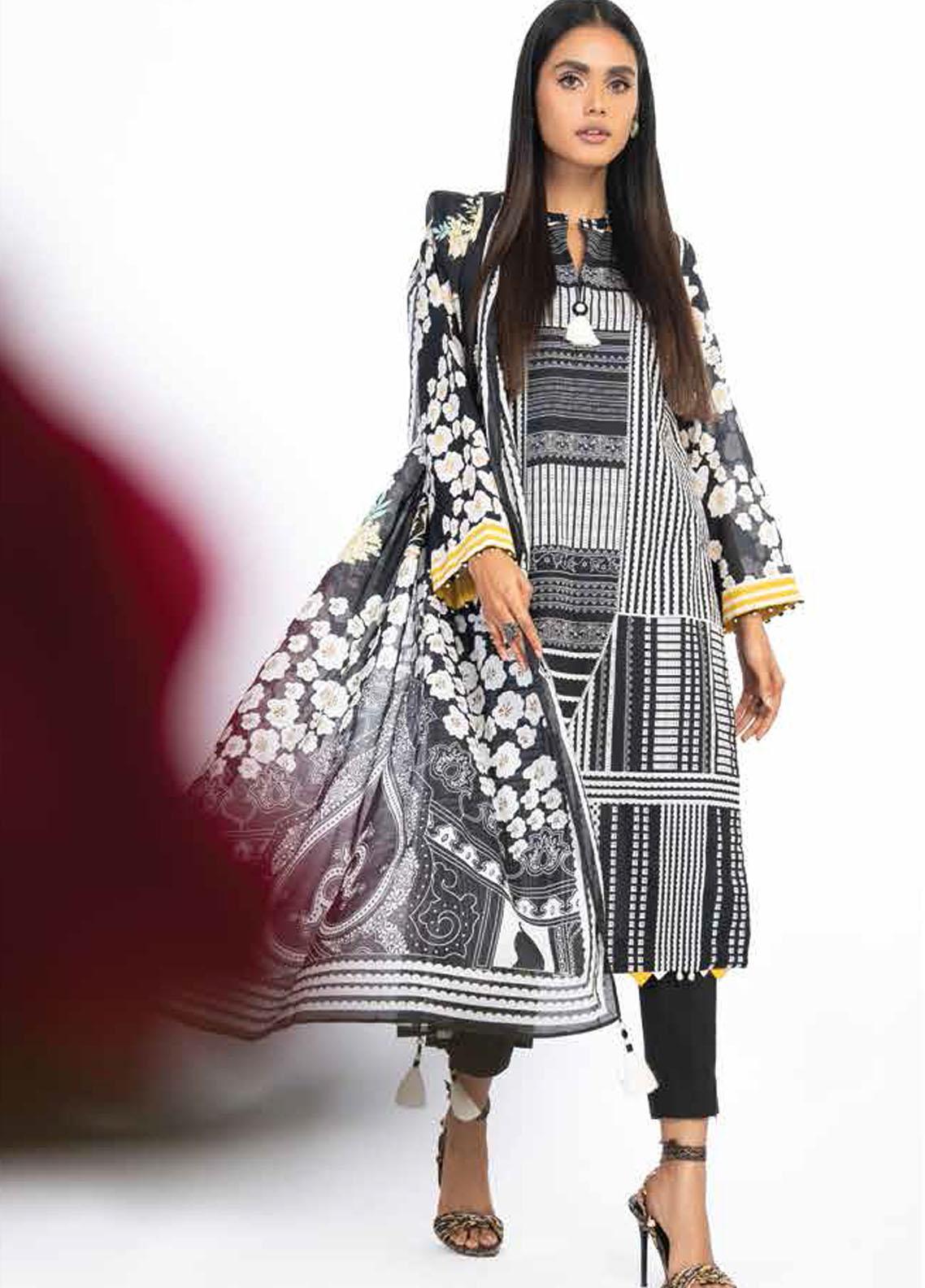 Al Karam Printed Lawn Suits Unstitched 3 Piece AK23SSL SS-36-23-Black - Summer Collection