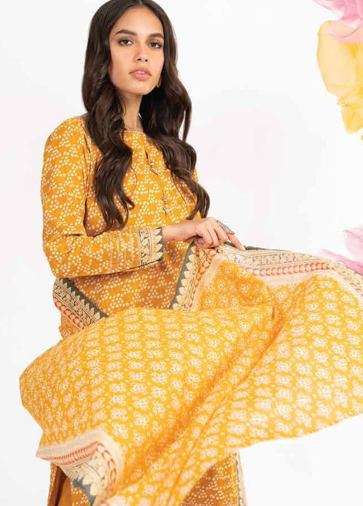 Al Karam Printed Lawn Suits Unstitched 3 Piece AK23SSL SS-7.1-23-Mustard - Summer Collection