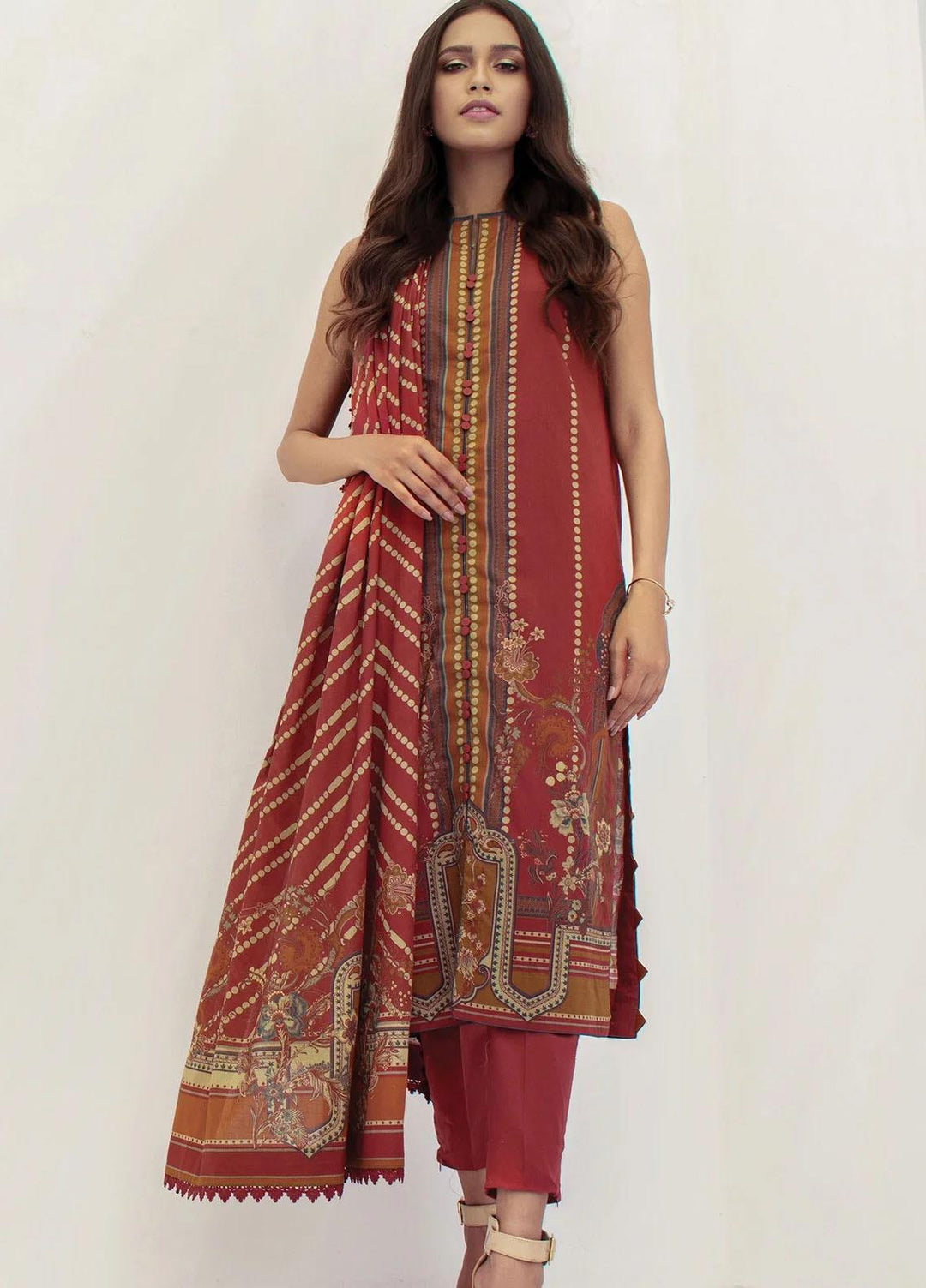 Al Karam Printed Lawn Suits Unstitched 3 Piece SS-12-21-2-Red - Summer Collection