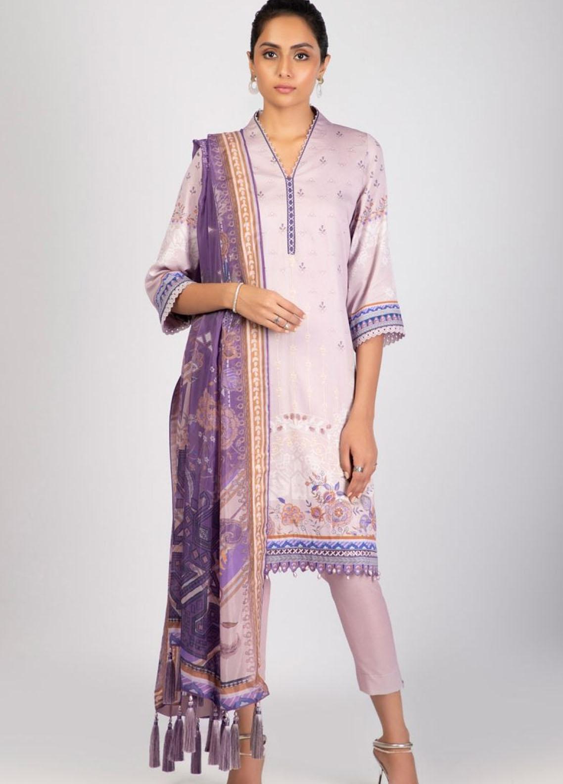 Al Karam Printed Satin Suits Unstitched 3 Piece AK22S SS-25.1-22 Lilac - Summer Collection