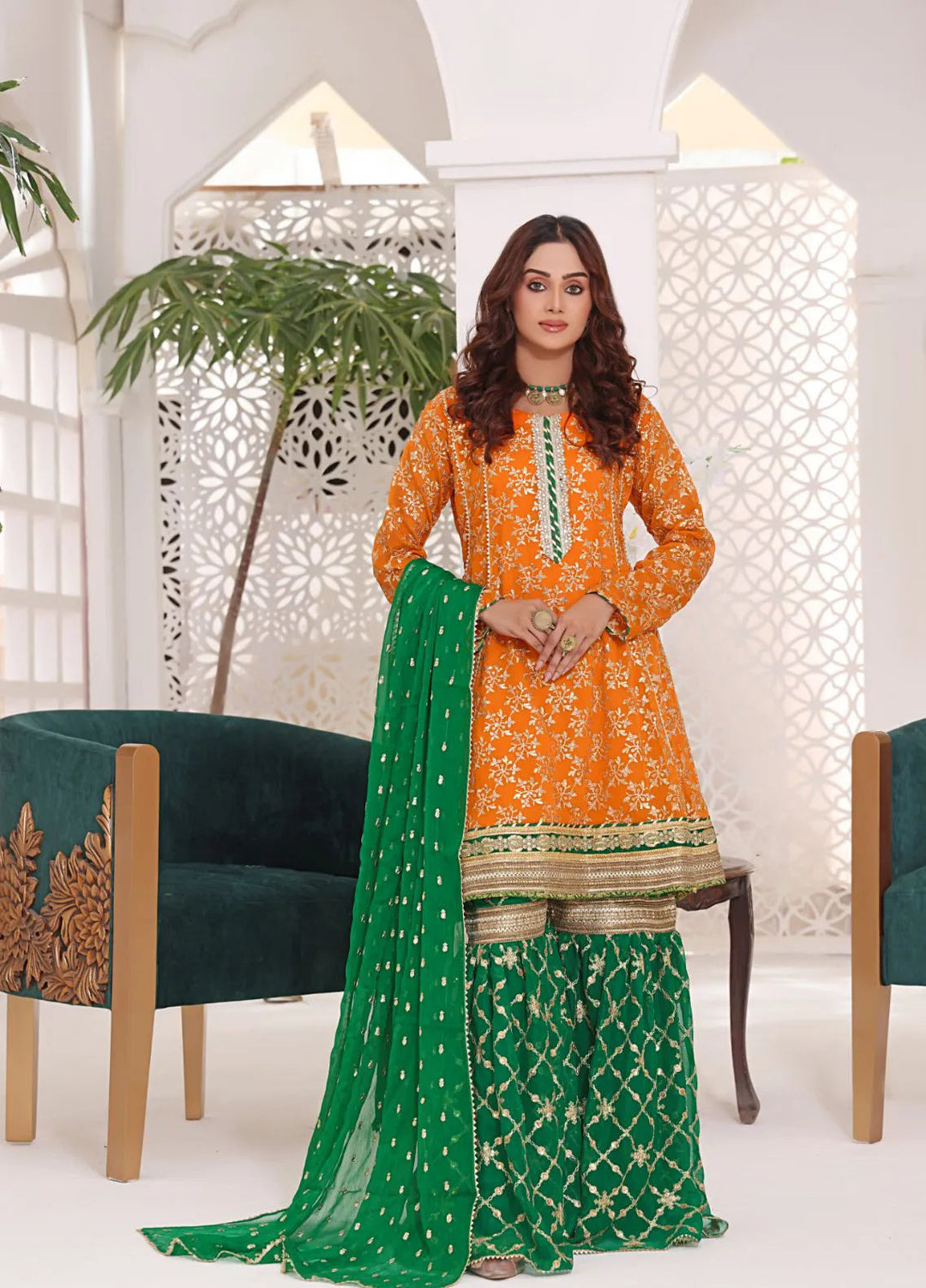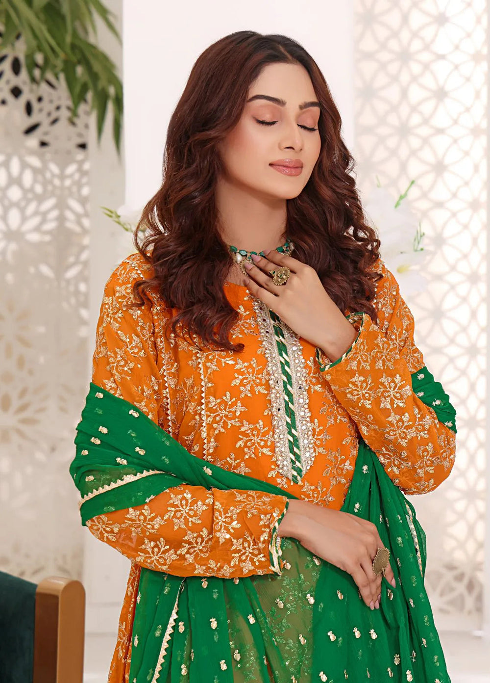 Al Siyaab Pret Embroidered Chiffon 3 Piece Suit Zeena Orange