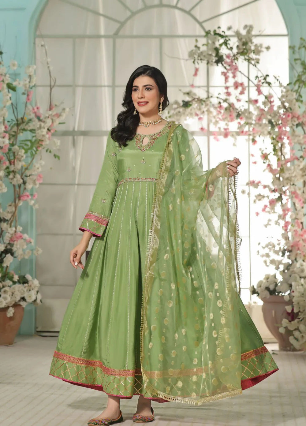 Al Siyaab Pret Embroidered Cotton Silk 3 Piece Suit Heer Dhaani Green