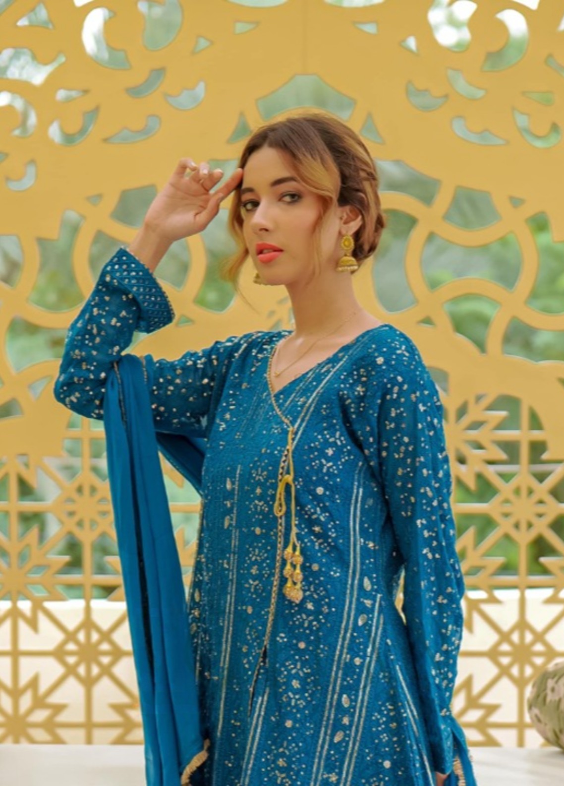 Shadiyan by Al Siyaab Pret 3 Piece Embroidered Chiffon Janaan Blue - Festive Collection