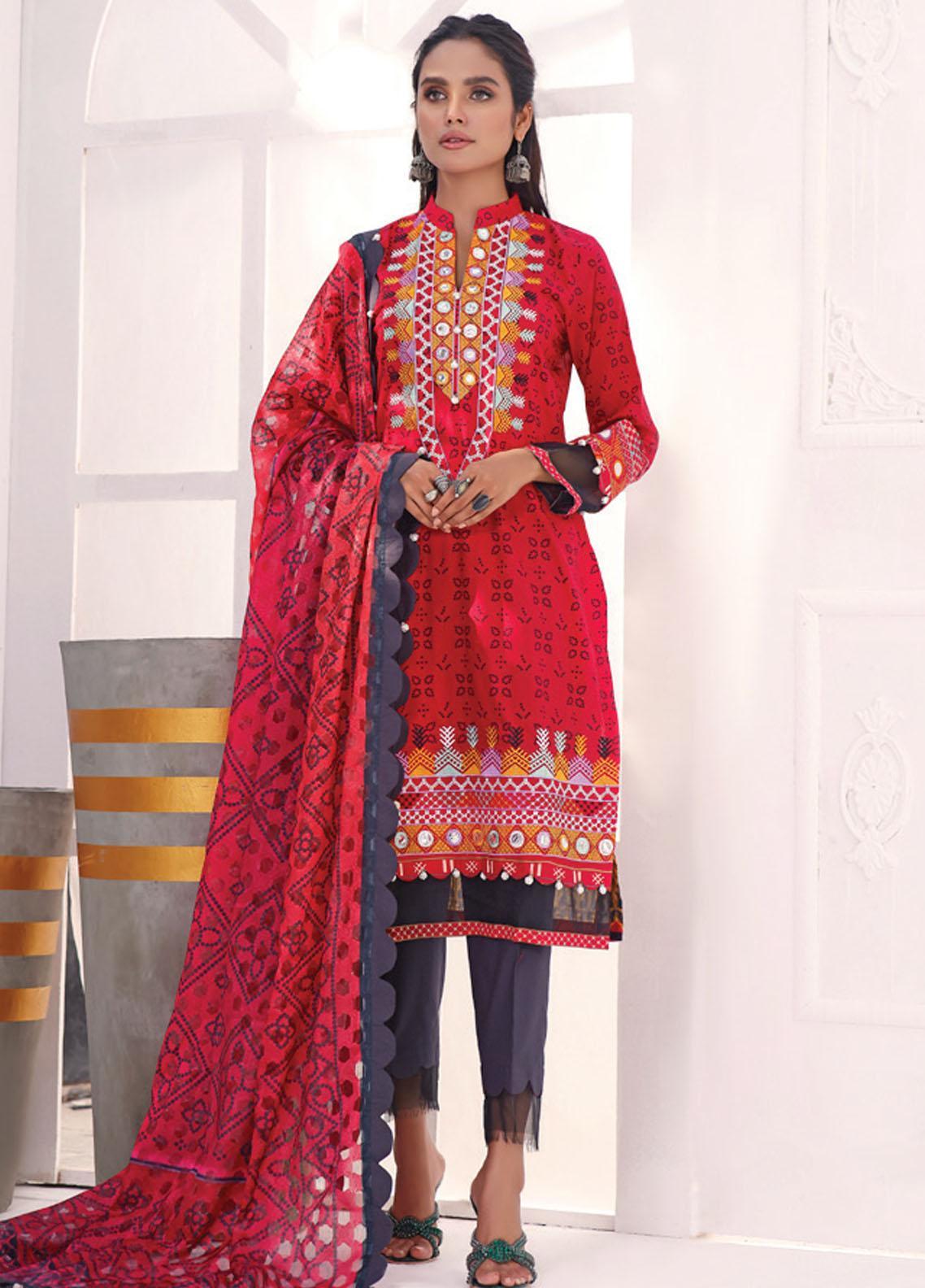 • Digital Printed Cambric Embroidered Shirt with Foil Work