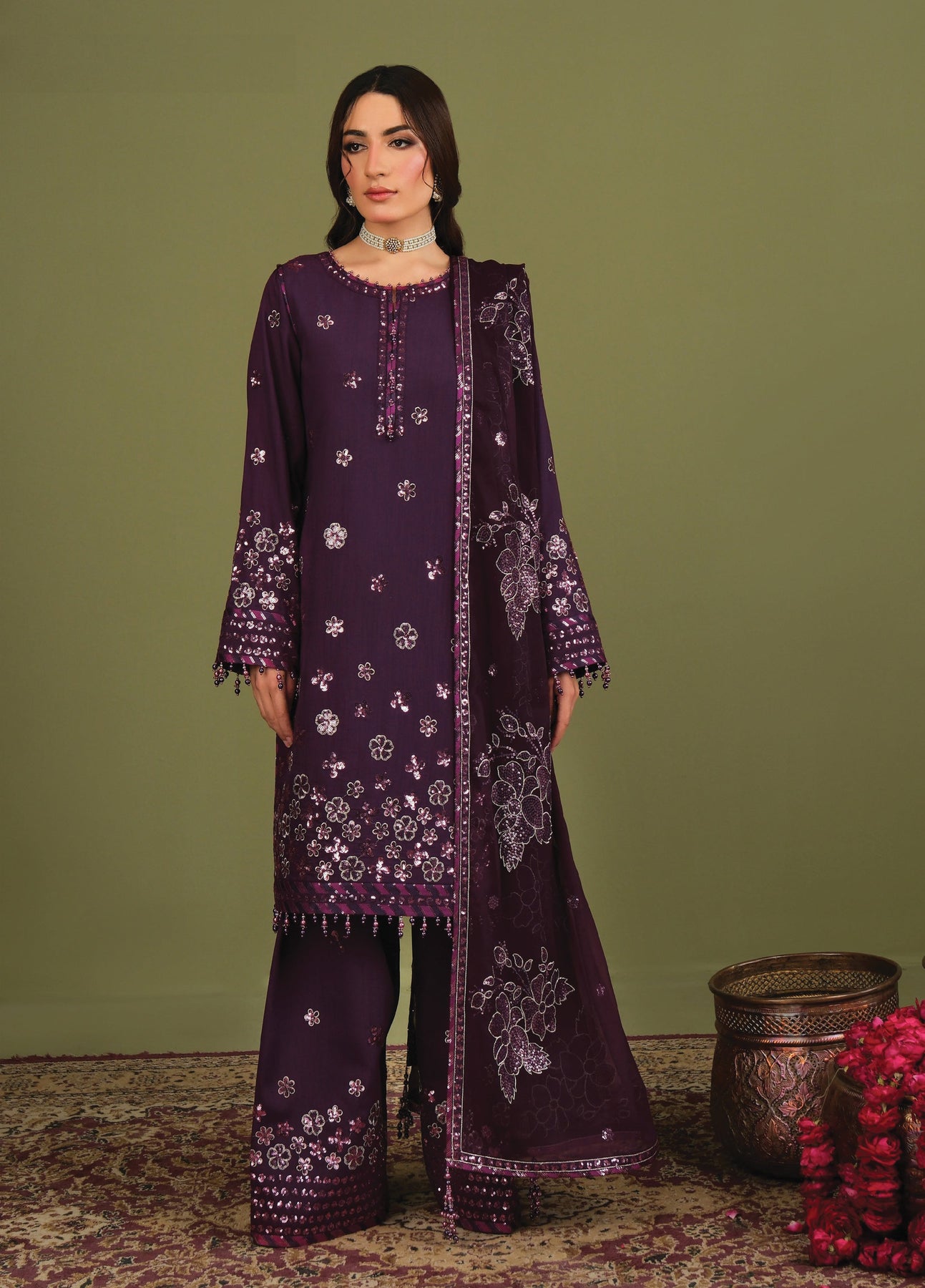 - Embroidered Chiffon Dupatta