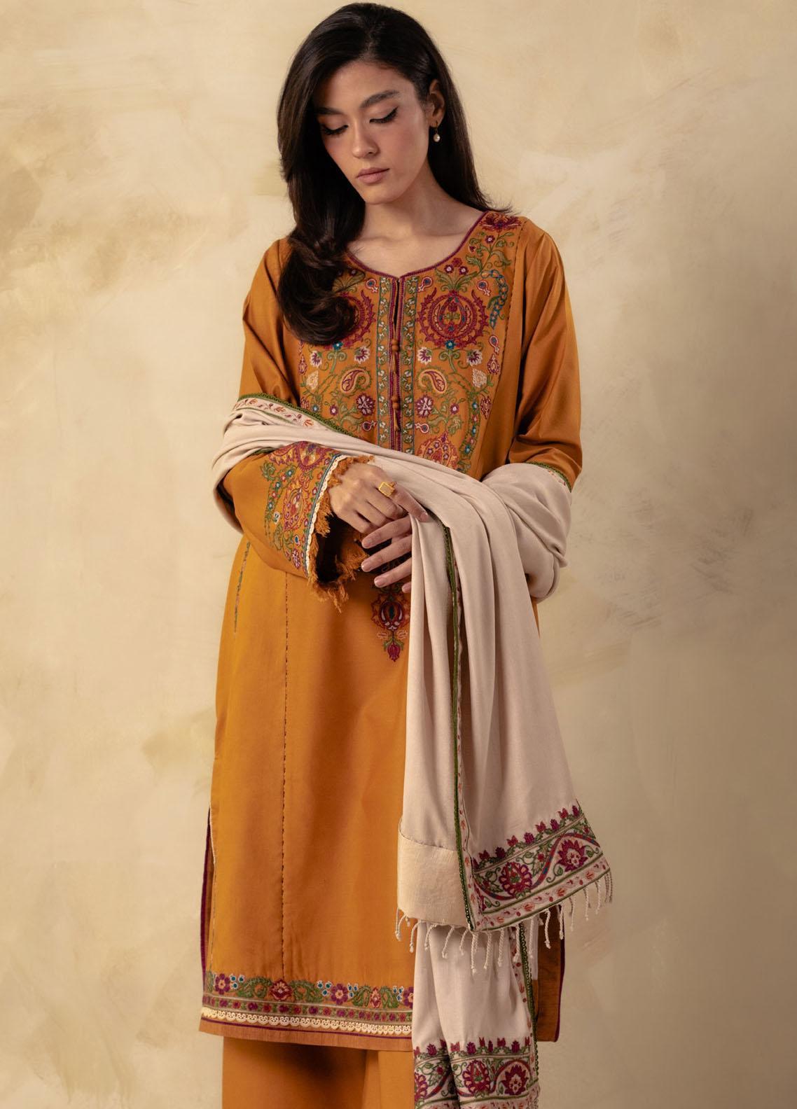 Coco By Zara Shahjahan Embroidered Linen Suits Unstitched 3 Piece CZS23W 5A - Winter Collection