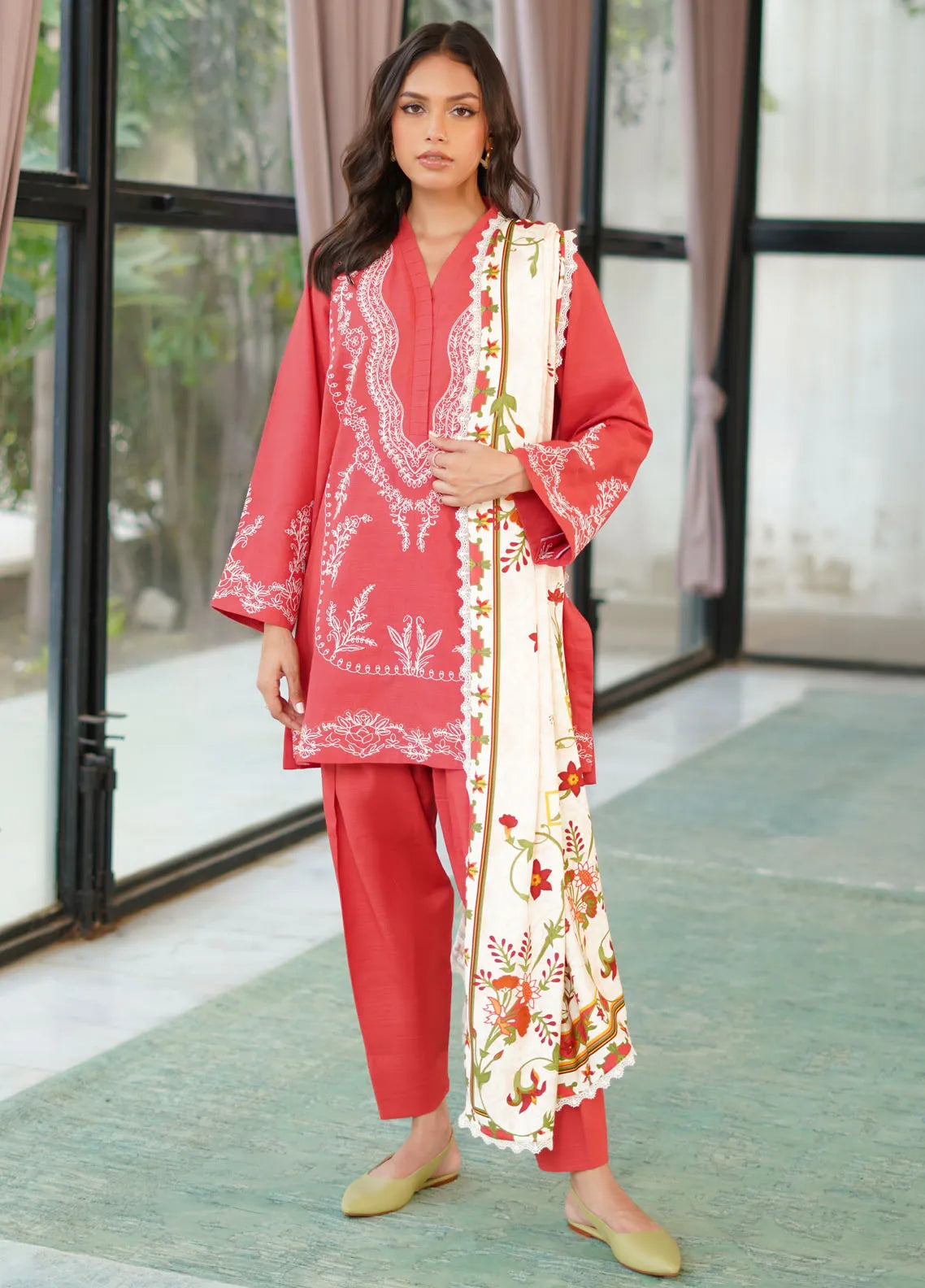 Embroidered Khaddar 3 Piece Suit