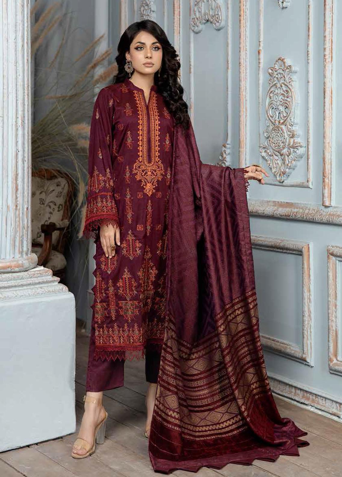 Tehzeeb By Riaz Arts Embroidered Leather Peach Suits Unstitched 3 Piece RA22TP TL-34 - Winter Collection