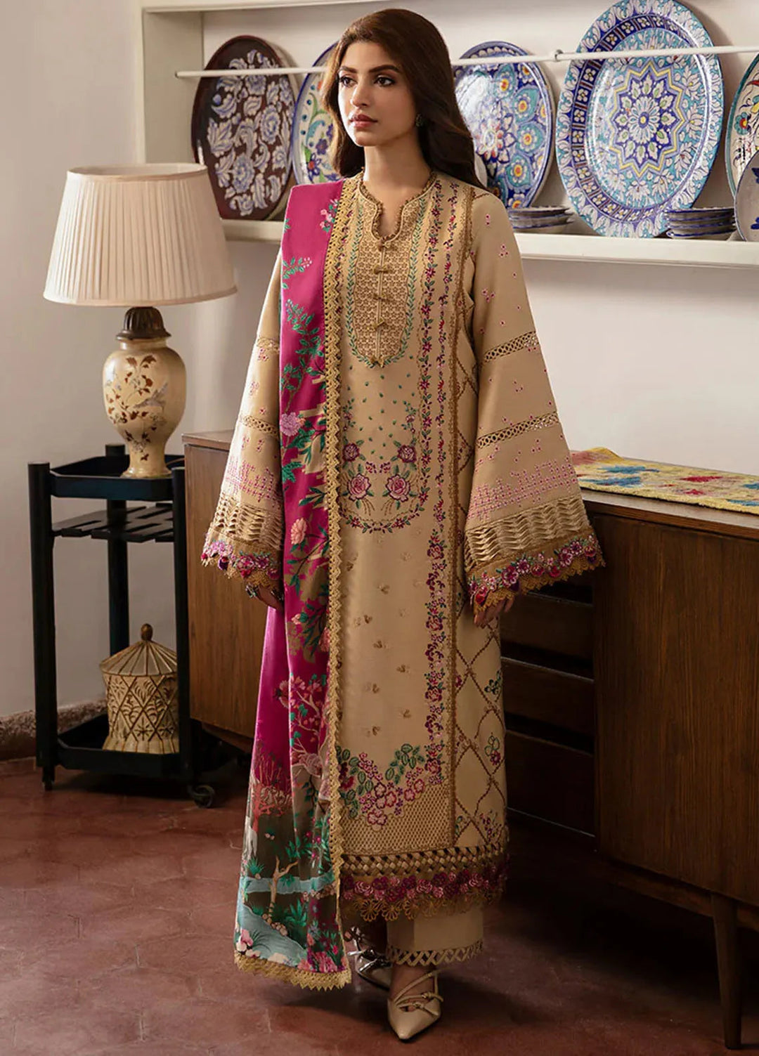 Zaha By Khadijah Shah Embroidered Khaddar Suits Unstitched 3 Piece ZL24W ZW24-02 Dilara - Winter Collection
