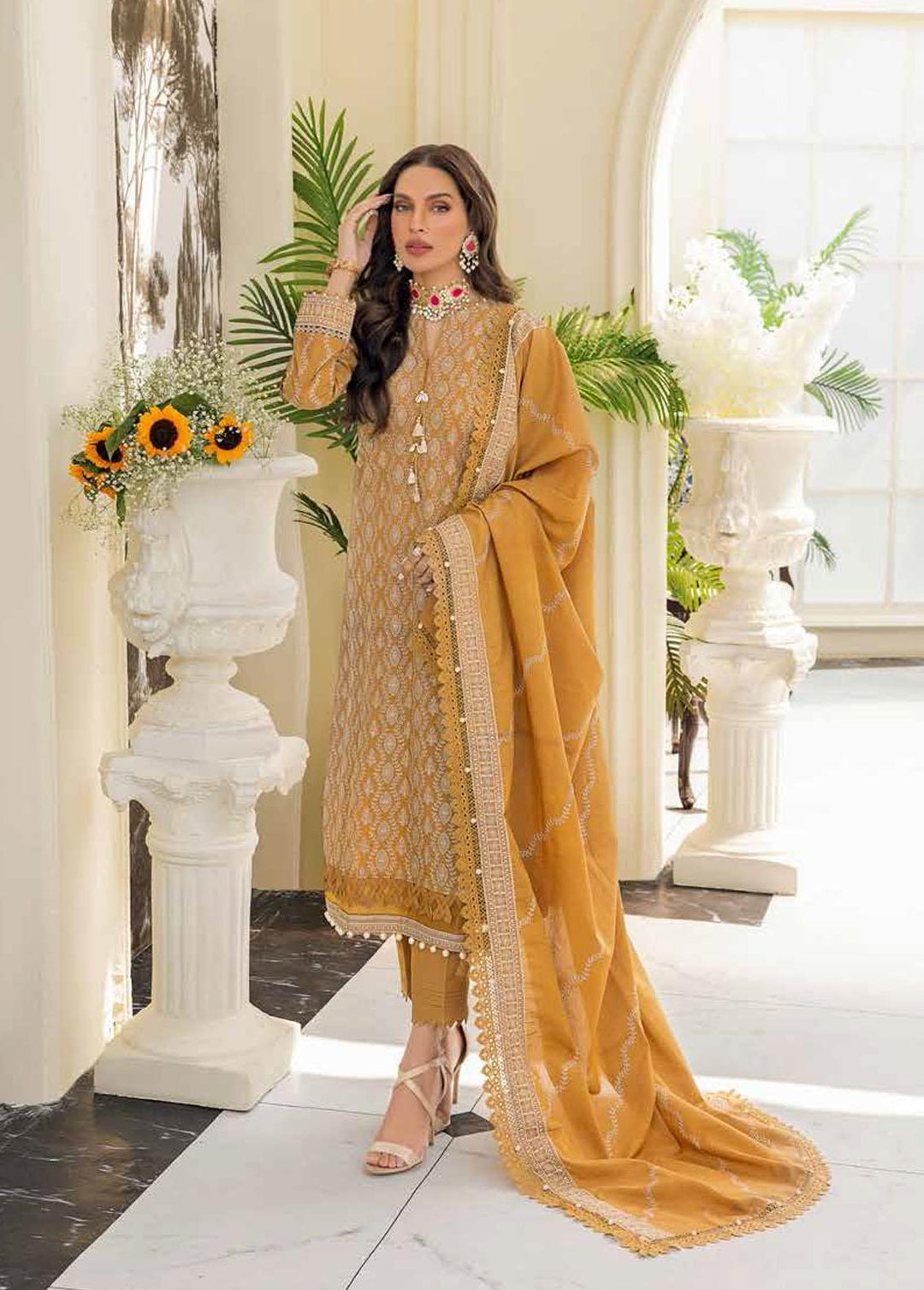 Winter Blossoms By Seran Embroidered Karandi Suits Unstitched 3 Piece SRN22WB 02 Daffodil - Winter Collection
