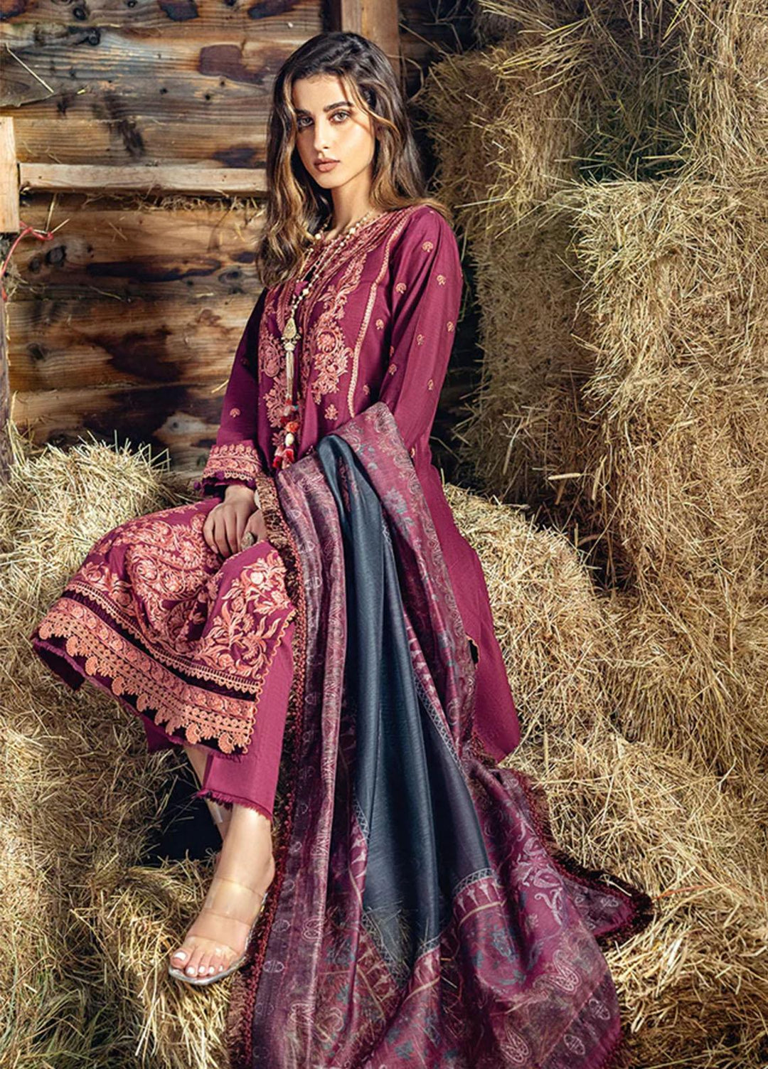 Shadow Stapel by Aalaya Embroidered Karandi Suits Unstitched 3 Piece ALY22SS D-08 - Winter Collection