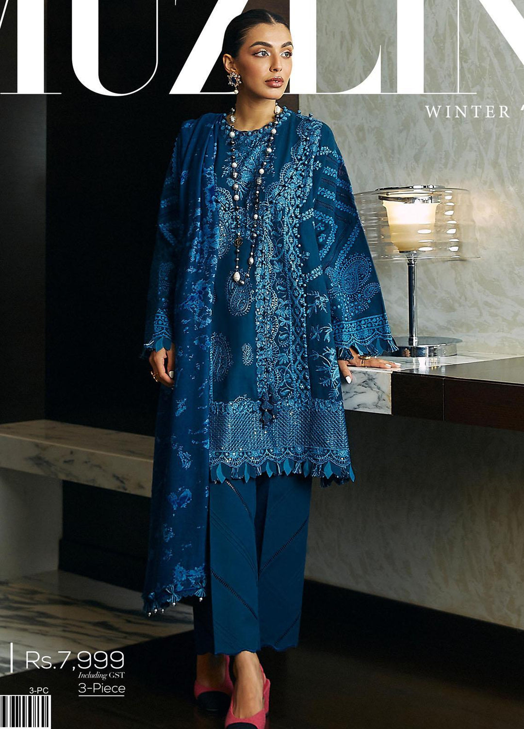 Muzlin By Sana Safinaz Embroidered Slub Suits Unstitched 3 Piece SS23MZ-V3 16B - Winter Collection