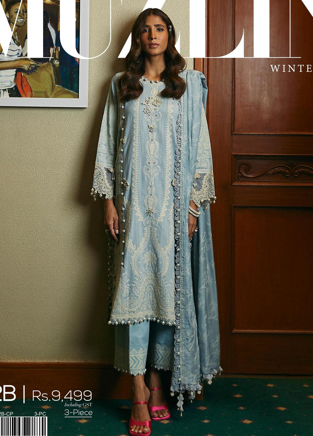 Muzlin By Sana Safinaz Embroidered Slub Suits Unstitched 3 Piece SS23MZ-V3 12B - Winter Collection