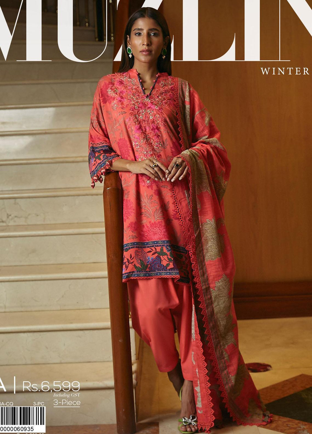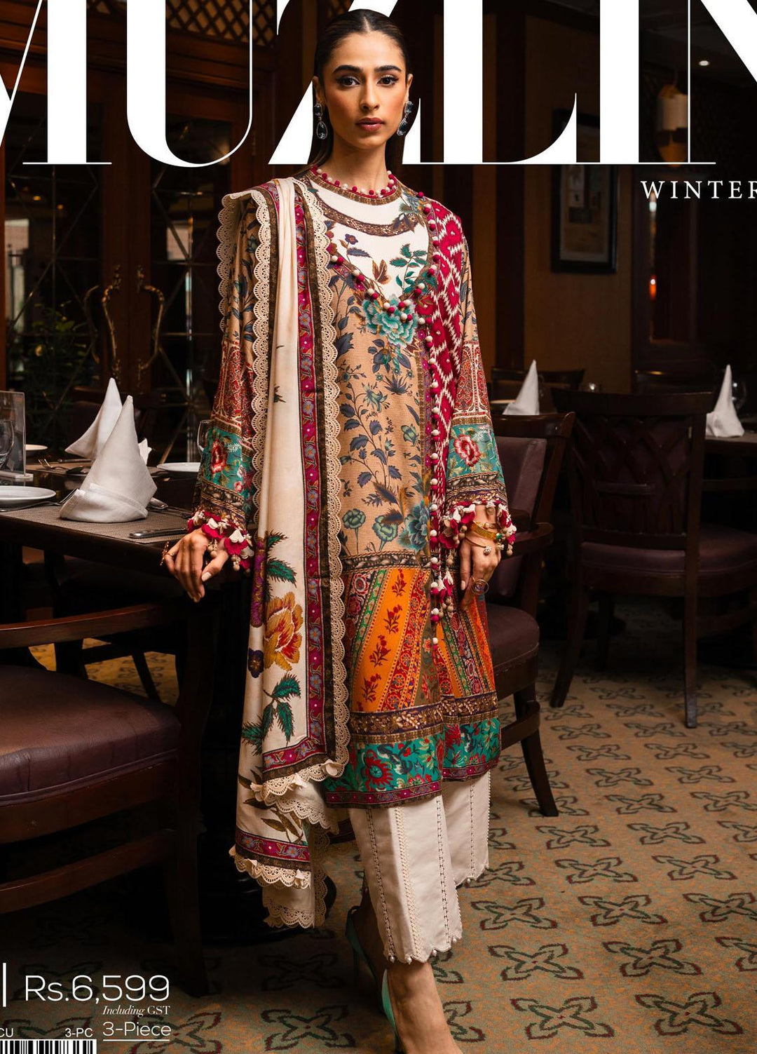 Muzlin By Sana Safinaz Embroidered Linen Suits Unstitched 3 Piece SS23MZ-V3 8A - Winter Collection