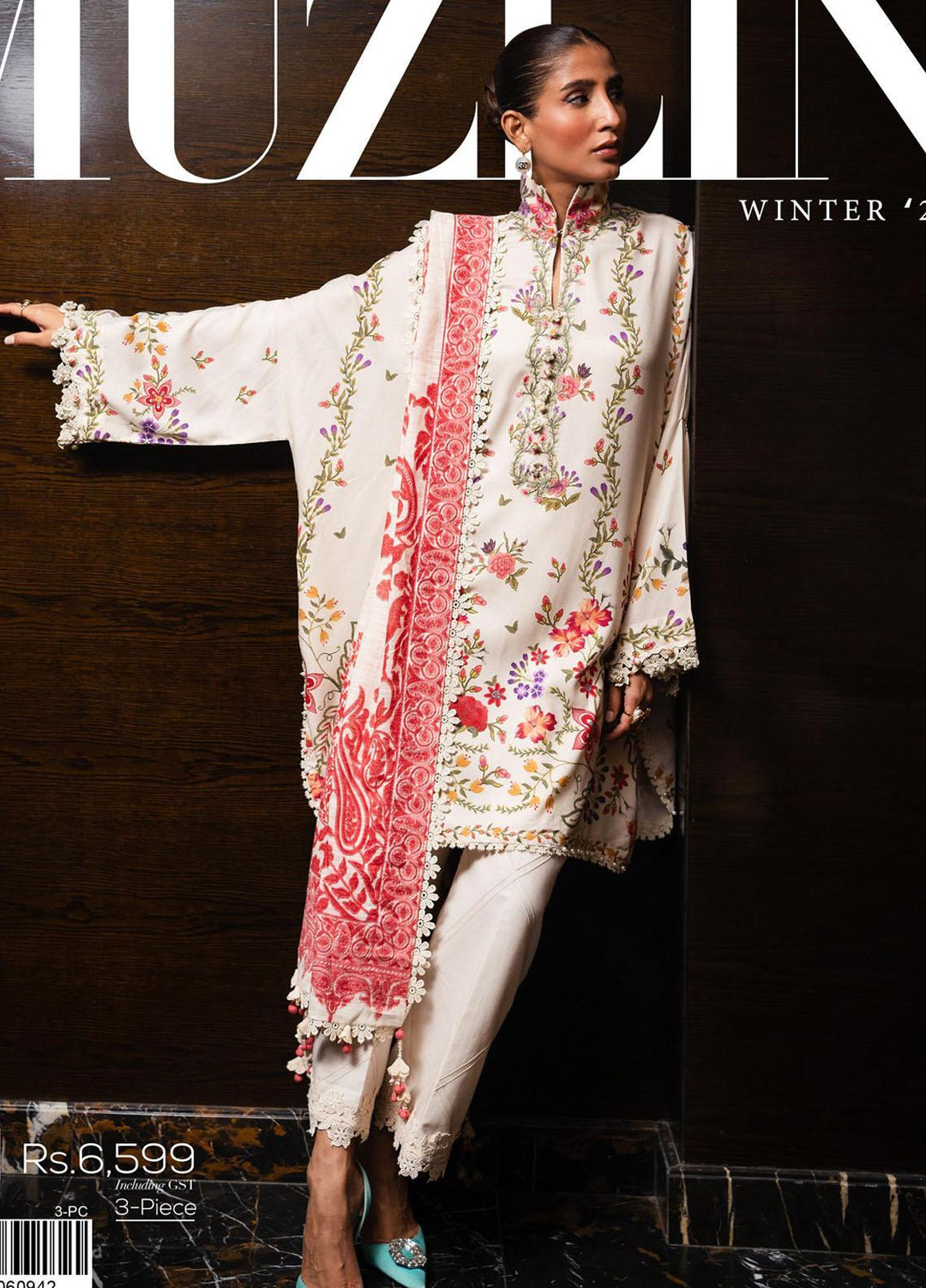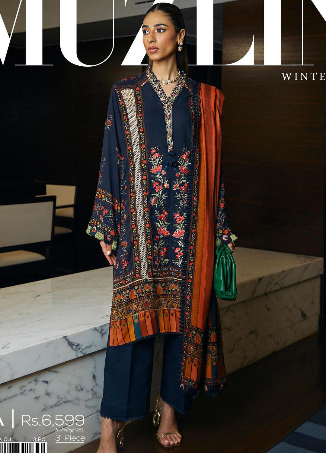 Muzlin By Sana Safinaz Embroidered Linen Suits Unstitched 3 Piece SS23MZ-V3 1A - Winter Collection