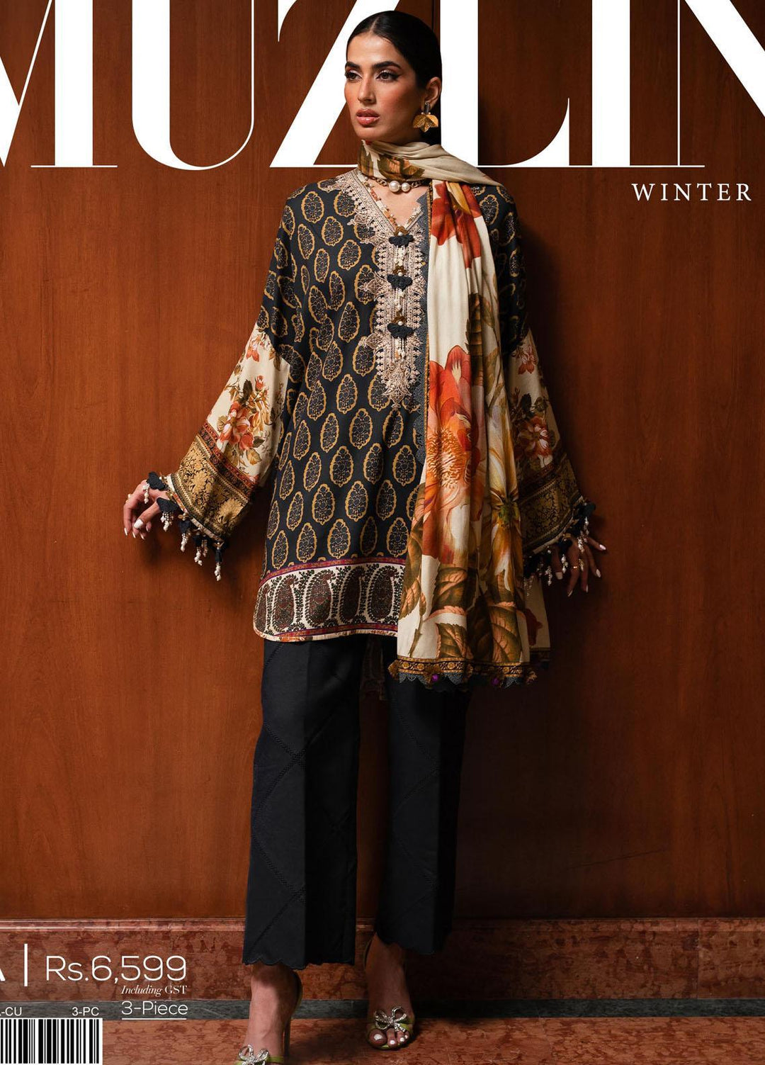 Muzlin By Sana Safinaz Embroidered Linen Suits Unstitched 3 Piece SS23MZ-V3 1B - Winter Collection