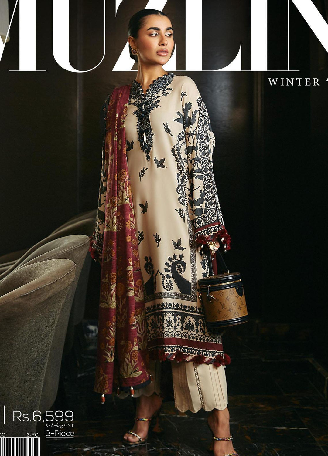Muzlin By Sana Safinaz Embroidered Linen Suits Unstitched 3 Piece SS23MZ-V3 3A - Winter Collection
