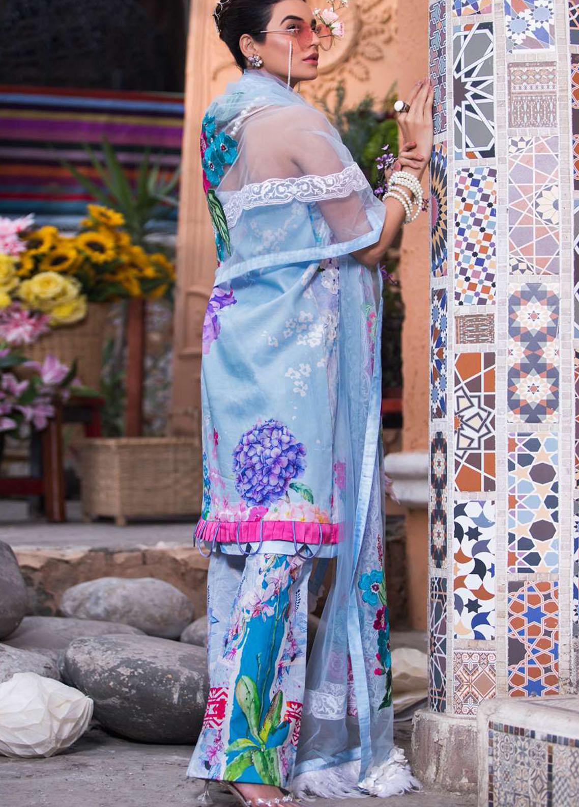 - Applique laser embroidered on digital printed lawn front 1.25 yards.