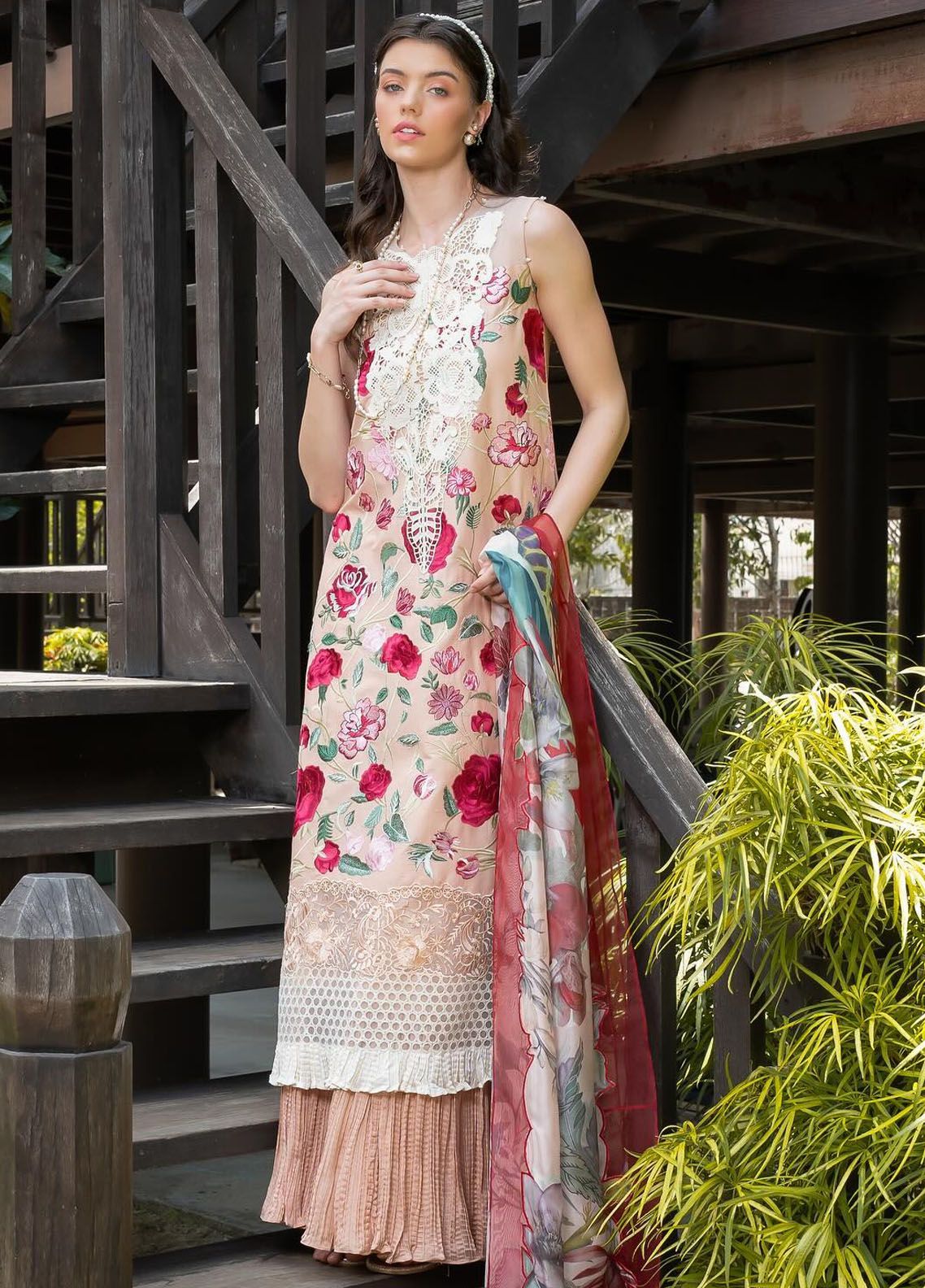 • Fully Embroidered Floral Front On Dyed Lawn.