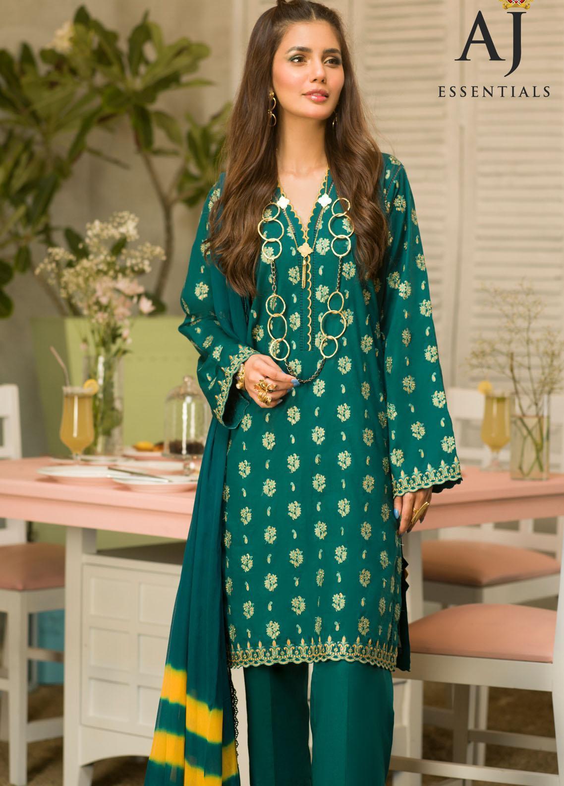 AJ Essentials by Asim Jofa Embroidered Cotton Suits Unstitched 3 Piece AJ22AJ AJES-18 - Summer Collection