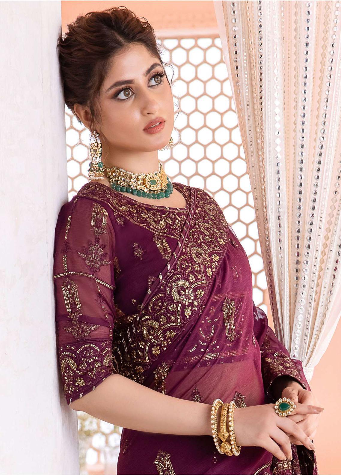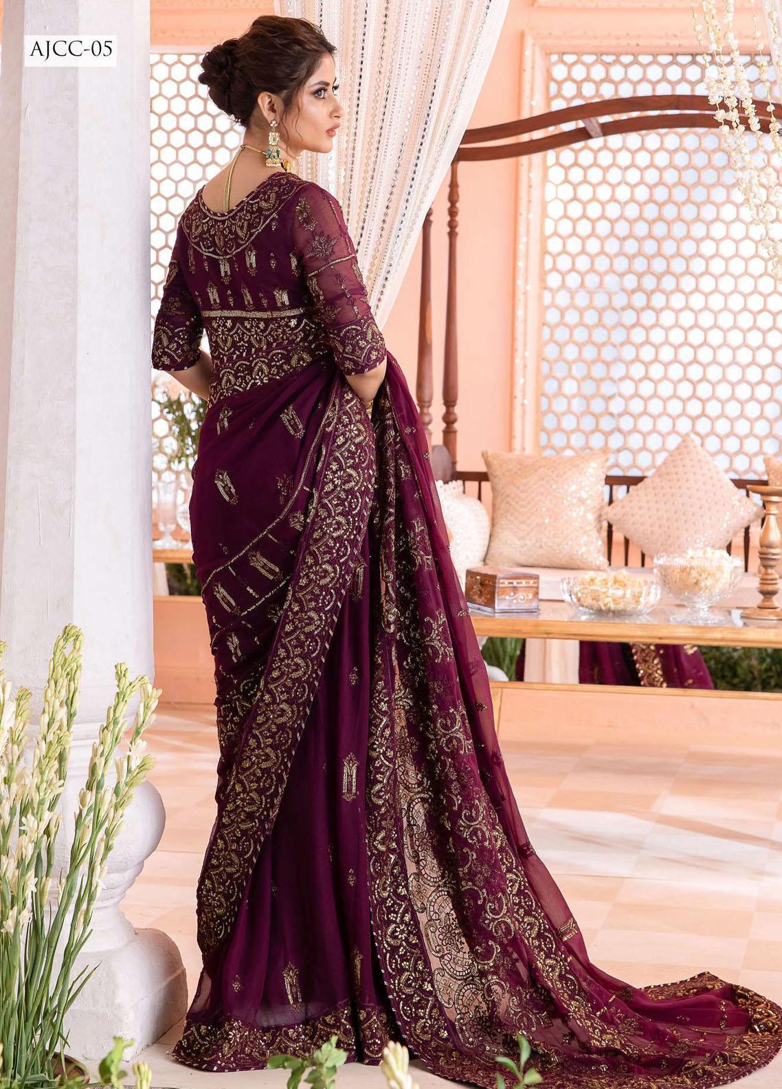 Chandni By Asim Jofa Embroidered Chiffon Unstitched Saree AJ23CH AJCC-05 - Luxury Collection