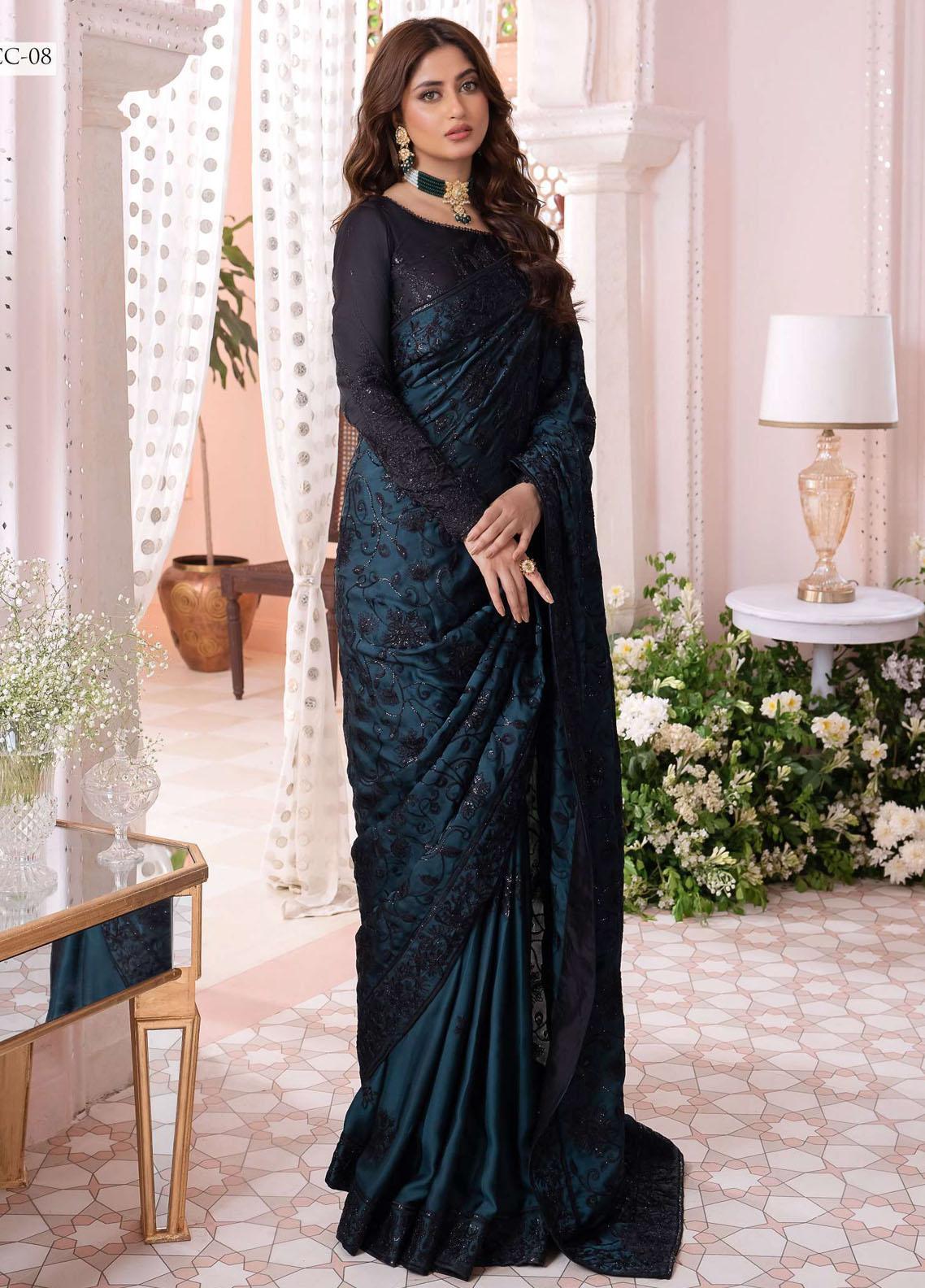 Chandni By Asim Jofa Embroidered Silk  Unstitched Saree AJ23CH AJCC-08 - Luxury Collection