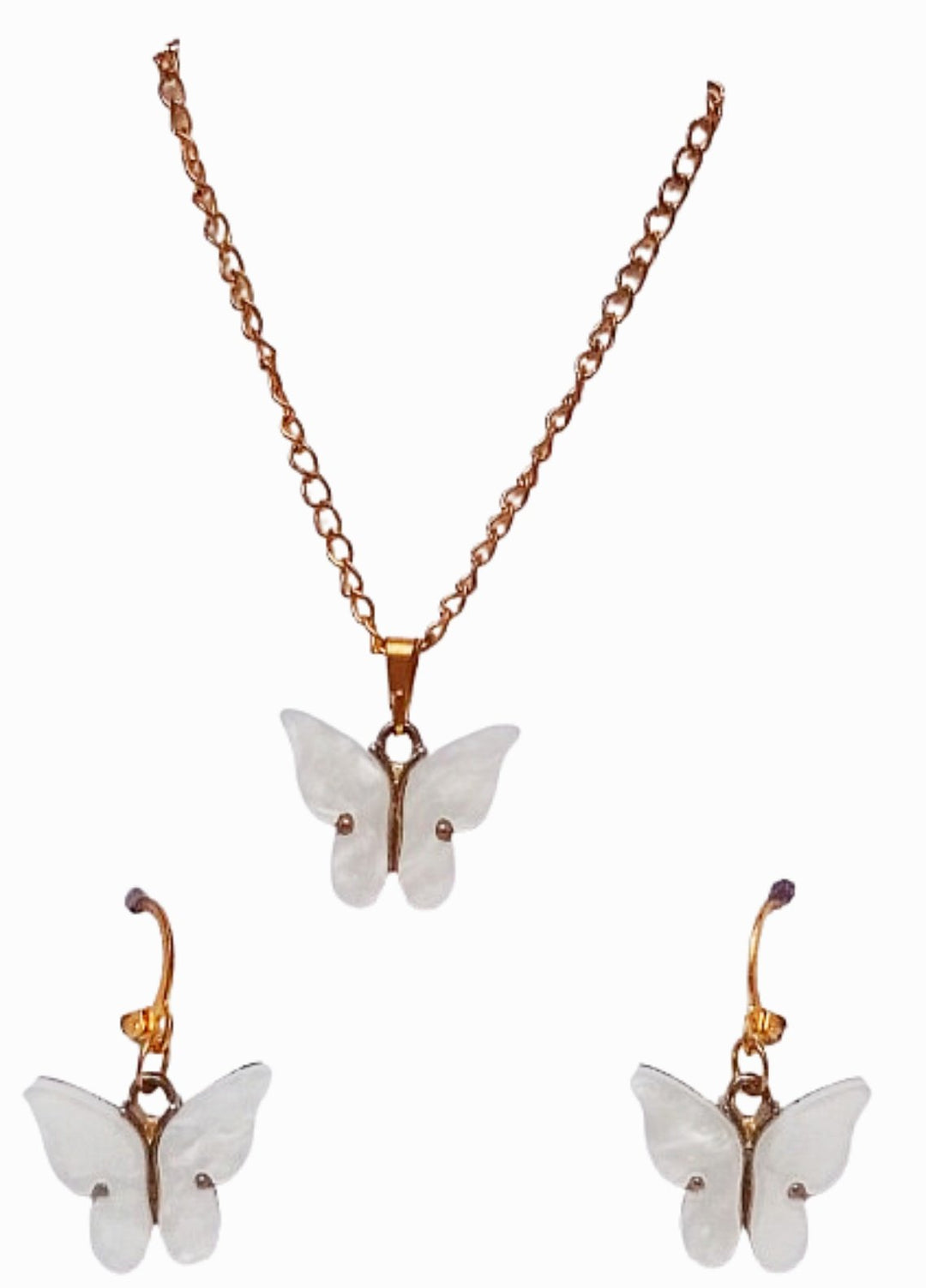 Pendant and Earrings Acrylic butterfly charms with gold hooks 3 Piece