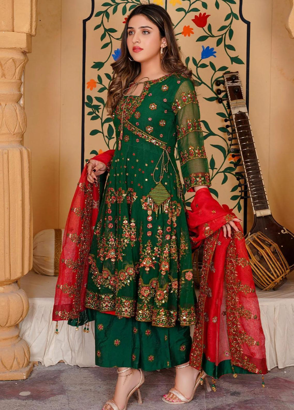 Dhanak By Ayat Pret Embroidered Net 3 Piece Suit Zaitoon