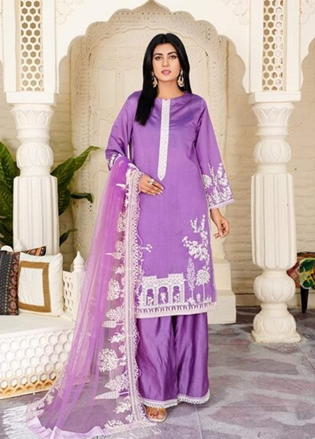 Ayat Pret Formal Cotton Silk 3 Piece Suit Banafsha