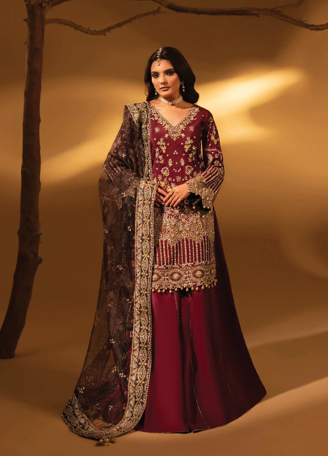 Ember by Aylin Unstitched Organza Embroidered Suits 3 Piece AYL25EF D6-Scarlet - Festive Collection