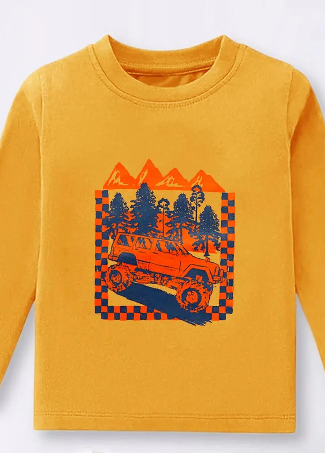 Baby Nest Yellow Adventure Mobile Jeep Printed Full Sleeves T shirt for Kids - BNDR-93