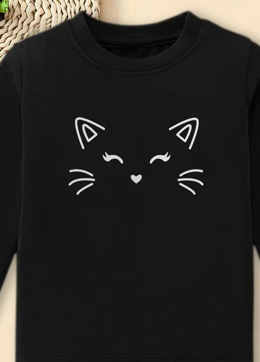 Baby Nest Black Cat Face Adorable Printed Full Sleeves T shirt for Kids - BNDR-68