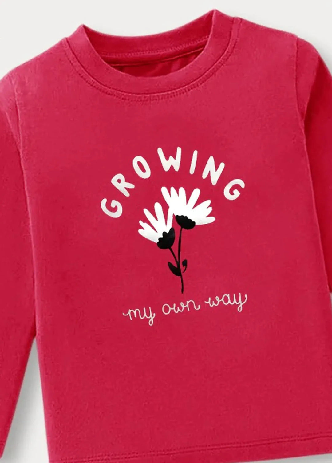 Baby Nest Pink Flower Growing My Own Way Printed Full Sleeves T shirt for Kids - BNDR-49