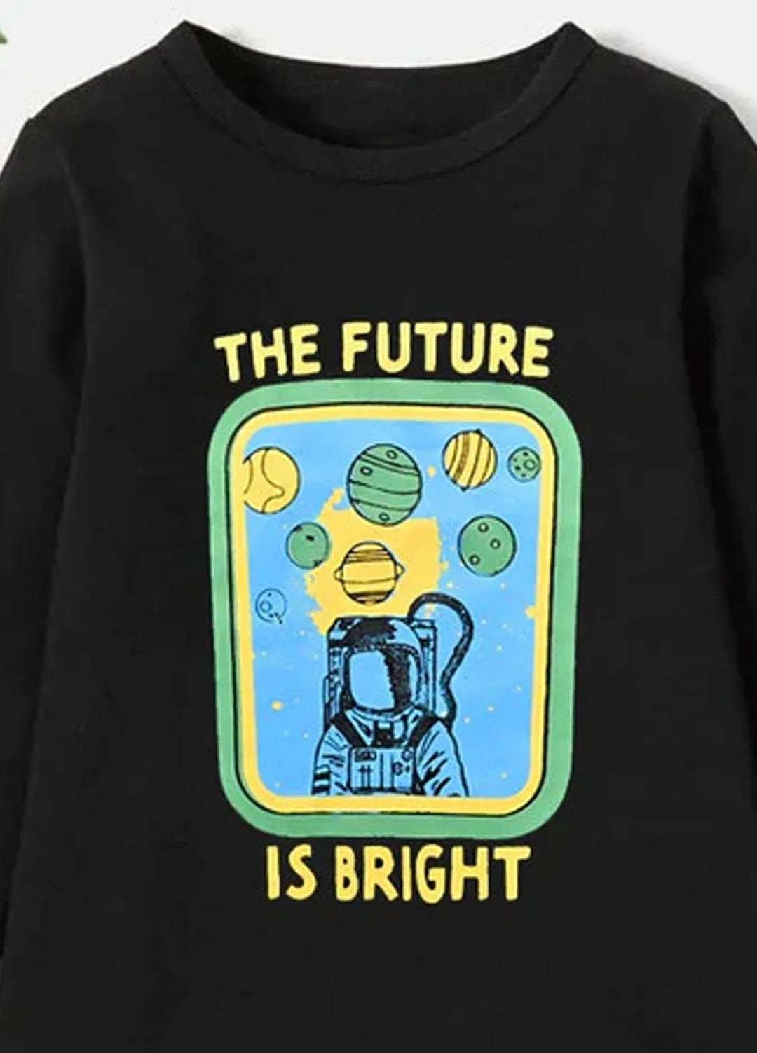 Baby Nest Printed The Future Full Sleeves T Shirts for Kids Black - SBT-311