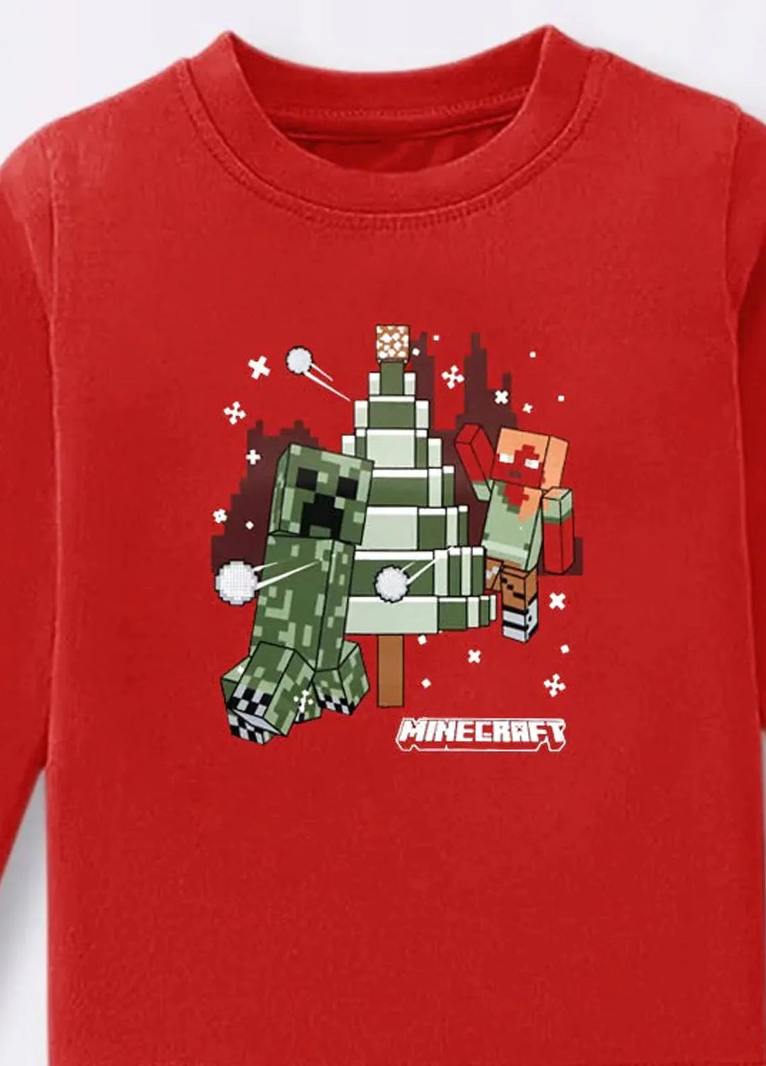 Baby Nest Red Crafting Adventures in Minecraft Printed Full Sleeves T shirt for Kids - BNDR-65