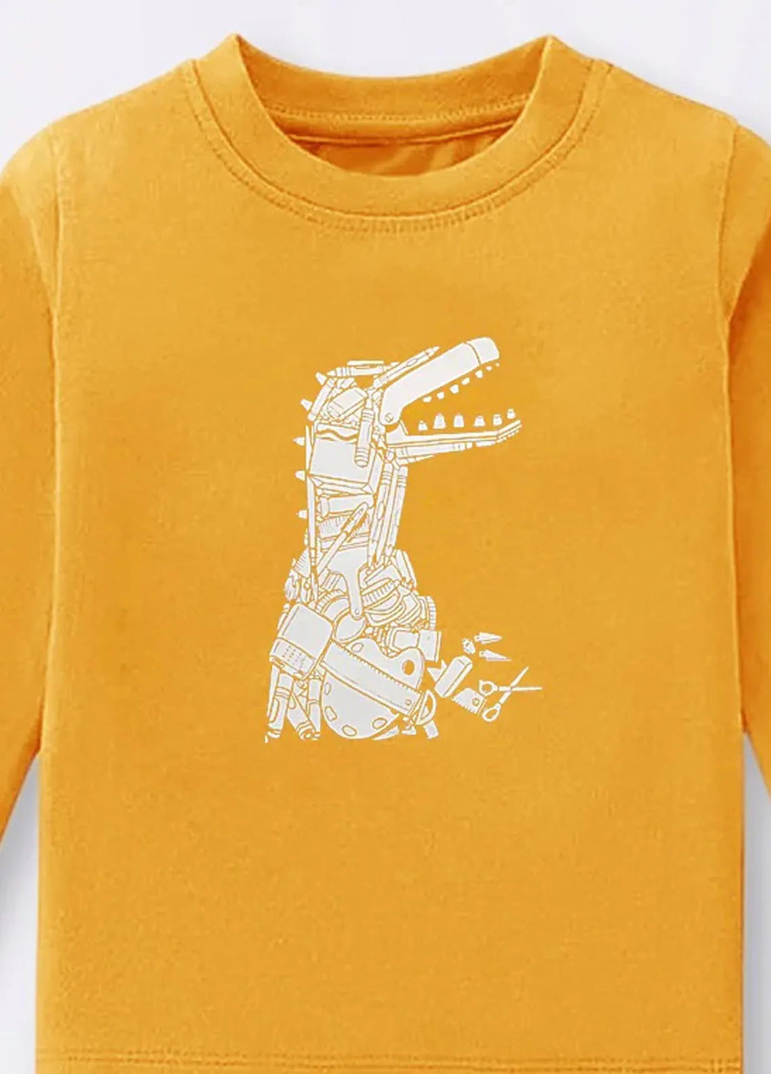 Baby Nest Yellow Dino Robot Printed Full Sleeves T shirt for Kids - BNDR-47