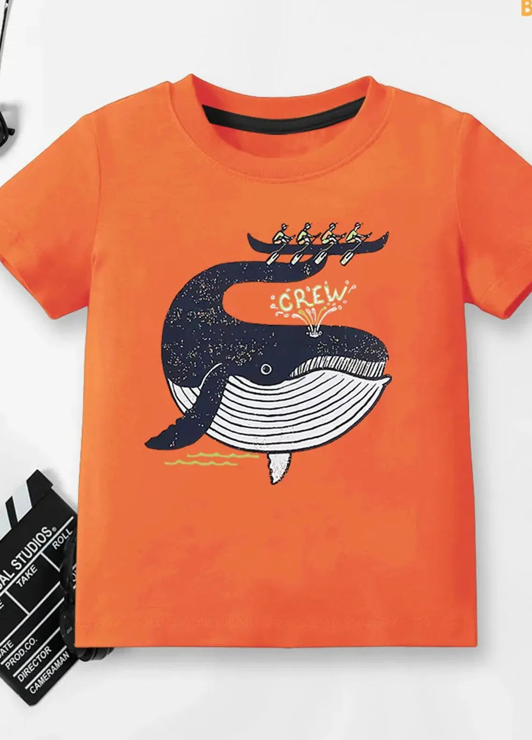 Baby Nest Pret 1 Piece Easyclean - Water Repellent & Stain Resistant T-Shirt - Sbt-355-D1 - Crew Whale - Orange