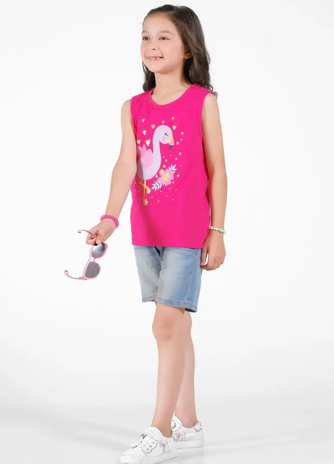Baby Nest Girls Sando Flamingo Palm Tree Light Pink